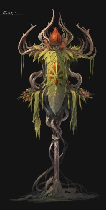 Elegant, slender and taller even than a lizard drawn to their full height the elves enjoy a fortitude that is unmatched between the main Seven Races of Rivellon.[1] Because of this and their cultural tendency of keeping themselves hidden within their ancient forests allowed them to live inordinately long lives.[1] Many generations of men , dwarves and lizards may pass before elven lifetime runs its course if it ever does. There are rumors that elves do not die of natural causes and pass away only if they are killed.[1]